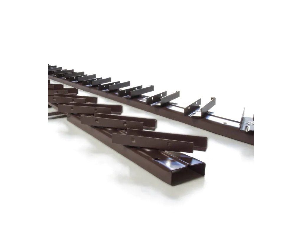 Systém je navržen s důrazem na modularitu. Jednotlivé moduly o délce 100 cm a krycí ploše 98,5 cm lze spojovat vertikálně i horizontálně bez viditelných mezer – a vytvořit tak souvislou stěnu přesně podle rozměrů vaší terasy, pergoly, altánu nebo balkonu. V případě potřeby lze moduly zkracovat v polovině, mezi prvním a druhým úchytem, a přizpůsobit je atypickým prostorům.