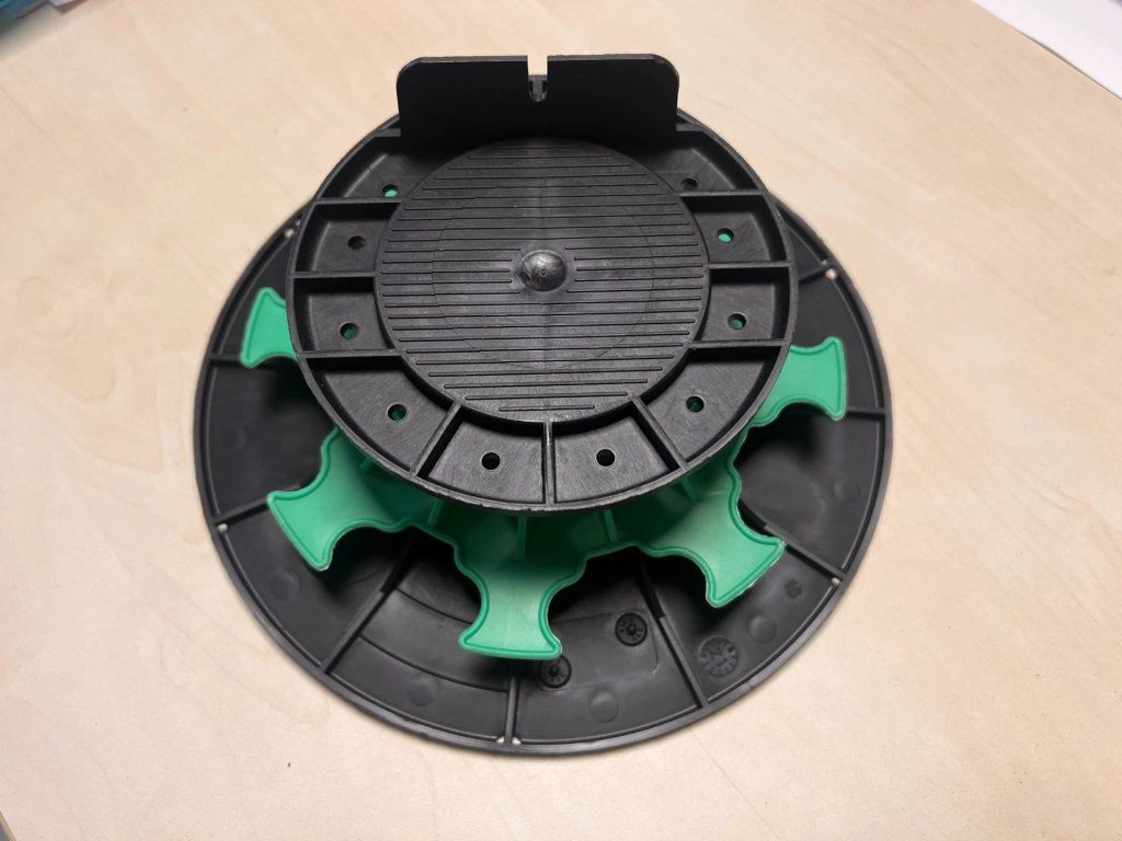 Žádné speciální nástroje, žádné složité postupy. Stavitelný terč H 18-32mm jednoduše umístíte na podkladovou vrstvu, nastavíte požadovanou výšku otáčením základny a položíte povrchový materiál. Celý systém je intuitivní a časově nenáročný – ušetříte hodiny práce oproti tradičním metodám pokládky.
